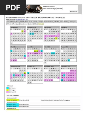 Kalendar Cuti Umum Cuti Negeri Bagi Sarawak Tahun 2016 Pdf